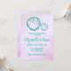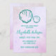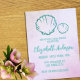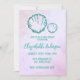 Ducha de bebé con conchas verde azuladas y fondo de color morado lavanda