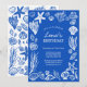 Invitación Seashells Frame Birthday Party Blue Beach PERSONAL