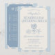 Celebrate your bride-to-be in elegant coastal style with this “Seashells & Wedding Bells” beach bachelorette weekend invitation and itinerary set.