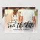 Esta elegante tarjeta de presentación de fechas muestra tu foto emparejándola con un capricho moderno y romántico que dice "Salva la fecha". Simplemente agregue su foto al frente y al reverso y complete los detalles de su gran día usando las plantillas proporcionadas.