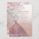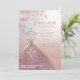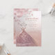 Invitación Secuencias florales rosa vestido de oro Quinceañer