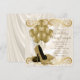 Invitación de cumpleaños de marfil y oro para mujer con hermosos zapatos de tacón alto con brillo dorado, globos dorados, champán y perlas sobre un fondo de satén beige marfil crema lujoso y glamuroso. Esta elegante invitación de cumpleaños rosa y dorada se personaliza fácilmente para su evento simplemente agregando sus datos en el estilo de letra y color, redacción y diseño de su elección. También puede mover o eliminar los remolinos, el champán y los globos. Este es un diseño impreso sin joyas reales, perlas, brillantina, etc.
