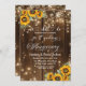 Una elegante invitación al aniversario de una boda con luces de cuerda, girasoles y caligrafía elegante que usted puede personalizar con sus detalles.