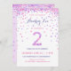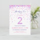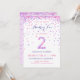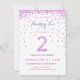 ¡Celebra el cumpleaños de tu hijo de 2 años con un colorido confetti rosa y morado en estas invitaciones de cumpleaños de 2 años! Presentando los detalles del fiesta de su hija y un "2" en confeti. La parte posterior tiene un diseño de confeti con un suave color de lavanda. Este adorable diseño es super lindo y jovial - y perfecto para el chica que ama rosa y morado!