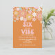 Invitación Seis es un ambiente Groovy Retro Floral de 6º cump
