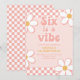 Seis es un ambiente Chica Groovy Invitación de cumpleaños número 6 inspirada en los 70 con fuentes y margaritas y patrón de cuadros