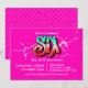 Una invitación de graffiti rosa brillante y desordenada adecuada para un niño de seis 6 años.