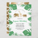 Selva, invitaciones de la fiesta de cumpleaños del safari, convenientes para cualquier edad, diseñado con un efecto de la acuarela del vibrante las hojas de este estilo de la invitación y los animales tropicales del safari en falso efecto metalizado de oro. ¡Añada un tacto especial al día especial de su niño con estas invitaciones de la fiesta de cumpleaños del arte!