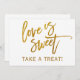 Letrero de buffet de dulces con letra "El amor es dulce" (Hoja de oro falsa): Decore la barra de dulces / mesa de buffet de su boda con este letrero moderno de caligrafía de pincel. Está configurado con un efecto de hoja de oro falsa.