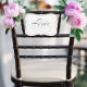 Señal de boda clásica en negro y blanco con un toque moderno que presenta el elegante guión de la palabra "Novia" y un borde negro. Ideal para la silla de la novia u otras disposiciones especiales como señal de puerta del tocador o limusina.