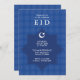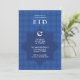 Invitación moderna de la celebración de Eid Mubarak con el ilustracion minimalista del modelo de estrella señalado 8 y la luna y la estrella icónicas.