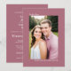 Esta hermosa invitación de boda de color rosa polvoriento o rosa malva es moderna, minimalista y simple. Cuenta con un diseño vertical u orientado al retrato con su foto en la portada rodeada por la leyenda "Por casarse" y sus nombres. La parte trasera tiene toda la redacción estándar de la invitación de boda junto con un espacio opcional para su sitio web. Artística y única forma de invitar a sus amigos y familiares a compartir su día especial.