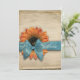 La imagen se parece a un girasol gigante de jardín naranja atado con un arco turquesa acuático sobre un papel de pergamino vintage de época. Esta es una imagen plana, y no una flor y un arco. Esto sería una invitación perfecta para una ducha de boda rural, un boda al aire libre, un boda orgánico u otro evento de compromiso con temas naturales. Casual y sencilla, pero elegante y única. Personalizar con tus datos personales en la espalda. Puentes botánicos para su día especial.