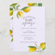 Con la temática de limón o cítricos, encontró su principal apretón de Invitaciones. Con una sencilla y elegante ducha de matrimonio para el verano, con un toque rústico de casa de campo y un cálido color púrpura pastel, este brunch nupcial invita a elegir entre una ducha de novia o una ducha de boda con temática de limón.