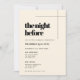 La noche anterior... Asegúrate de que todo sea perfecto para el gran día; recibe invitaciones modernas para tu cena de boda. Minimalista pero sorprendente: adoptar este diseño tipográfico ligeramente retro para su papelería boda, con un elegante color crema. Personalizable completo de texto, colores y fondos.