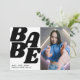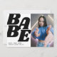 Una forma creativa de celebrar el cumpleaños de una adolescente es incluir una foto de tu hija en la invitación, con un dicho como 'BABE' en una tipografía moderna y negrita. La parte trasera de la invitación puede tener una sencilla plantilla de texto en blanco y negro con todos los detalles sobre la fiesta. Esta combinación de un dicho divertido con una foto de la cumpleañera permite a los invitados saber inmediatamente a quién está dirigida la invitación, con un toque moderno que seguramente causará impacto.