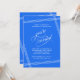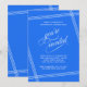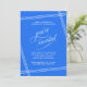 Simple y elegante con un toque contemporáneo, esta Invitación de Fiesta de Jubilación presenta líneas blancas en ángulo que enmarcan su texto sobre un fondo de azul cobalto de moda. El texto "estás invitado" en hermosos florituras de letra script se presenta intencionalmente de manera prominente para hacer que sus invitados se sientan especiales. Edite los detalles de la fiesta con sus especificaciones. Se muestra aquí como una Celebración de Fiesta de Jubilación, ¡puede editar este texto para cualquier ocasión! La invitación se puede pedir impresa y/o descargada digitalmente sin papel para su conveniencia.