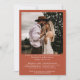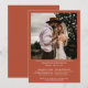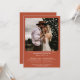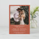Esta elegante terracota, naranja de óxido o boda de color rojo arcilla y la invitación a la cena son modernas, de moda y minimalistas. Presenta una foto de la pareja con un texto subestimado que contiene toda la información relevante sobre el ensayo del boda y la cena a seguir. Sencillo, bonito y elegante.