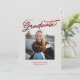 Con un simple "graduado" de escritura marrón roja en un estilo moderno escrito a mano, esta invitación de graduación de dos fotos y la invitación es la manera perfecta de celebrar tu graduación. Con una foto vertical en la parte delantera con un tipo de marrón, este diseño también tiene espacio en la parte de atrás roja correspondiente para incluir una segunda foto de los detalles de una fiesta de graduación. Es un diseño de graduación simple y elegante perfecto para chicas y hombres y funciona bien para graduados de secundaria y universitarios. Esta invitación de fiesta de grado de Lea Delaveris Design también está disponible como descarga digital. Buscar más estilos en la colección.