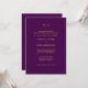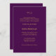 Fondo púrpura de berenjena para un diseño sencillo pero elegante basado en la tipografía. Encabezado monograma de la pareja. Oro ligero en purpura berenjena. Se revierte al color púrpura sólido.