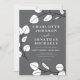 El elegante y bonito eucalipto deja la pizarra de pizarra invitada a la boda gris con hojas blancas y detalles de arte de la línea negra en un fondo gris pizarra. Un diseño minimalista y sencillo, moderno y sencillo, para una moda nupcial, perfecto para una descarga botánica o una invitación moderna a la boda impresa. Plantillas fáciles de usar con un guión de tipografía elegante en blanco sobre fondo azul. Dibujo minimalista único de vegetación, simplista y elegante y artista creó una invitación de boda personalizada. Pintura original de la artista Catherine Sweetman