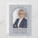Tan única como la persona que se celebra, esta moderna invitación a la fiesta de cumpleaños número 70 incluye una maravillosa plantilla de fotos en forma de arco para personalizar con la foto de su homólogo. El color azul polvoriento aporta un toque colorido al diseño. La plantilla de texto personalizado con texto que recorre el borde exterior de la foto tiene un atractivo moderno. Personalice la plantilla de texto con los detalles de su fiesta. La parte posterior de esta invitación está en blanco con sólo el color azul sólido, por lo que si necesita espacio adicional para añadir instrucciones, direcciones de conducción, etc., también puede añadir el texto deseado a la parte posterior de la tarjeta.