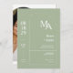 Esta invitación presenta un diseño minimalista moderno y sencillo y un elegante tipo de letra tipográfica con un fondo verde polvoriento junto con un encabezado de forma de arco y foto y código QR. La sencillez y el diseño limpio de esta invitación funcionan bien con todos los temas bodas y sin duda una gran adición a su boda. Simplemente personalizar los nombres y la redacción en unos pocos pasos fáciles y personaliza la tarjeta de invitación con tu foto de la pareja feliz y reemplaza el código QR con el tuyo al fondo de la invitación para darle un agradable toque personal. Por favor, tenga en cuenta: La forma de arco de la frase "Junto con sus familias" y las frases "Recepción a seguir" en la parte delantera y "Detalles y confirmación" en la parte posterior junto con las líneas en la parte delantera y trasera y otros elementos de arte gráfico no pueden editarse, moverse o eliminarse. Se han corregido. Si necesita cambiar el color, puede personalizar la tarjeta de invitación. Puede personalizar y personalizar la invitación para que se ajuste a sus necesidades de eventos de boda y simplemente haga clic en el personalizar de la invitación. Puede personalizar fácilmente la invitación con el texto como descarga digital y enviarla electrónicamente y compartirla con sus invitados a través de mensajes de texto, correo electrónico o medios sociales. También puede enviar o enviar la invitación a sus invitados. O se pueden obtener las dos cosas — invitación impresa y recibir la invitación en formato digital como descarga instantánea.
