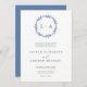 Hermosa, sencilla, rústica invitación a la boda con corona azul polvorienta e iniciales. Personalizable completo con nombres, fechas, ubicación y colores para que coincidan con el tema boda.