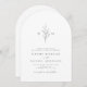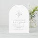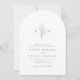 Invitación minimalista de boda en arco blanco y negro, con sus iniciales monogramadas y hojas botánicas ilustradas a mano en la parte superior, los detalles del evento se muestran a continuación en escritura moderna y letra clásica. Sencillo y lujoso. Ideal para bodas clásicos modernos, boda formal simple, elegante boda botánica. Vea todas las piezas coincidentes de la colección.