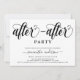La moderna, moderna y sencilla invitación a divorciarse incluye un guión caligráfico "después del fiesta" en letras escritas a mano y detalles fiestas. La parte posterior de la tarjeta está en color negro sólido.