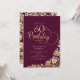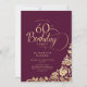 Sencilla y elegante invitación a la fiesta de cumpleaños número 60 en burdeos y oro. Diseño elegante con rosas, Relieve metalizado de oro falso y tipo de letra de guión de tipografía. La carta de invitación a la moda es perfecta para una elegante celebración de cumpleaños femenina. Personaliza con tus propios detalles. Se puede personalizar a cualquier edad. Invitaciones Zazzle impresas o una plantilla imprimible digital de descarga instantánea.