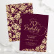 Sencilla y elegante invitación a la fiesta de cumpleaños número 70 en burdeos y oro. Diseño elegante con rosas, Relieve metalizado de oro falso y tipo de letra de guión de tipografía. La carta de invitación a la moda es perfecta para una elegante celebración de cumpleaños femenina. Personaliza con tus propios detalles. Se puede personalizar a cualquier edad. Invitaciones Zazzle impresas o una plantilla imprimible digital de descarga instantánea.
