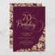 Invitación Sencillo elegante 70 cumpleaños de oro de Borgoña