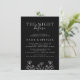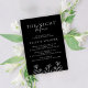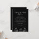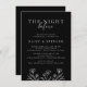 Eleva tu cena de boda con esta invitación atemporal y elegante. Comience sus festividades bodas con estilo con esta sencilla pero impresionante invitación. La paleta clásica de colores blanco y negro y el delicado borde floral crean un ambiente de elegancia, lo que da un toque de elegancia a una cena de ensayo inolvidable. Imprimida en un fondo negro, esta invitación exubera sofisticación desde el momento en que sus invitados abren el sobre. Personalízalo con los detalles de tu evento para hacerlo único tuyo. Ya sea que esté planeando una reunión íntima o una celebración más grande, esta invitación hará que sus invitados esperen ansiosos el evento principal.