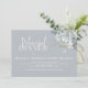 Este diseño presenta color de agua floral azul polvoriento, un código QR con direcciones de mapa para la cena en línea, eventos de salón de ensayo, moderna y elegante letra de guión de caligrafía, simple y elegante rosa de vegetación botánica, fuente moderna de tipografía minimalista simple, estilo primavera de verano de otoño, romántica elegancia suave simplista, dirección web añadir tu URL, la noche anterior