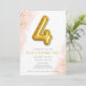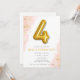 Sencillo y dulce oro y rosa con 4 globos de diseño invitaciones de cumpleaños para el cuarto cumpleaños de tu niñita. Personalizar con los datos de su fiesta.