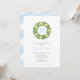 La corona de madera de paja pintada a mano adornada con limones vibrantes y flores blancas de bonito para este clásico diseño de invitación a la ducha de bebé.