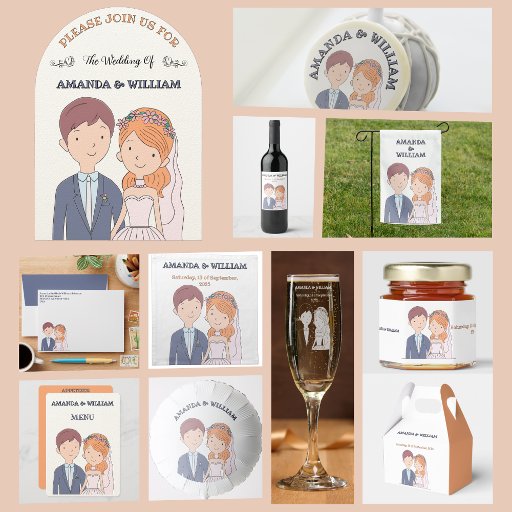 Whimsical Hand-Drawn Cartoon Wedding SuiteDiseñado por Fantabulou Stef