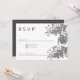 Una sencilla y elegante invitación de purpurina blanco y negro con encaje floral Wedding RSVP. Esta minimalista invitación monocromática de bodas florales de verano es perfecta para cualquier chica sofisticado. Este diseño es ideal para un evento boda moderno y elegante. Personalizar este diseño con su mensaje e información personalizada. Todos los diseños están impresos.