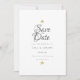 Esta moda ahorra la tarjeta de fecha que contiene los cupidos dorados por encima y por debajo de tu guarda los detalles de fecha establecidos en la tipografía clásica elegante.