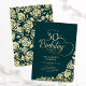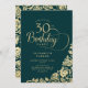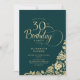 Sencilla y elegante invitación a la fiesta de cumpleaños número 30 en verde esmeralda y oro. Diseño elegante con rosas, Relieve metalizado de oro falso y tipo de letra de guión de tipografía. La carta de invitación a la moda es perfecta para una elegante celebración de cumpleaños femenina. Personaliza con tus propios detalles. Se puede personalizar a cualquier edad. Invitaciones Zazzle impresas o una plantilla imprimible digital de descarga instantánea.