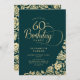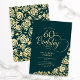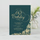 Sencilla y elegante invitación a la fiesta de cumpleaños número 60 en verde esmeralda y oro. Diseño elegante con rosas, Relieve metalizado de oro falso y tipo de letra de guión de tipografía. La carta de invitación a la moda es perfecta para una elegante celebración de cumpleaños femenina. Personaliza con tus propios detalles. Se puede personalizar a cualquier edad. Invitaciones Zazzle impresas o una plantilla imprimible digital de descarga instantánea.