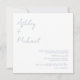 Prepárate para una boda que no sea ordinaria. La sencilla y polvorienta escritura azul moderno vestido de vestir código de la invitación a la boda de Anastasia Surridge Designs es la manera perfecta de preparar el escenario para una noche inolvidable. Esta carta minimalista de ultra moda se basa en nuestra mejor invitación a la boda cuadrada, y combina artísticamente toques tradicionales con líneas modernas. A un lado de la invitación, encontrarás los nombres de la pareja feliz y todos los detalles necesarios de la recepción, todo representado en un bello y editable guión escrito a mano. ¡Si quieres una foto de compromiso, es mejor que te anticipes mejor! Y, de manera única, esta invitación también incluye una línea de código de vestimenta que puede ser editada o borrada por completo. Comience su viaje a "felizmente siempre después" con Anastasia Surridge Diseñe un sencillo y contemporáneo guión vestido de vestir con código de vestimenta, invitación a la boda. Derechos reservados 2022.