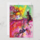 Retrato de personaje colorido, caprichoso y artístico, pintura en acuarela con colores brillantes en rojo, rosa, verde, amarillo, destellos dorados. Personaje inspirado en la Commedia dell'Arte y el Carnaval de Venecia y máscaras de plumas venecianas.