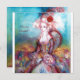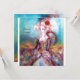 Diseño elegante, colorido, con clase y caprichoso en colores brillantes, fucsia, turquesa, blanco. Hermosa y sofisticada mujer rubia blanquecina, telas doradas brillantes azules y rosadas de un traje barroco con plumas y una rosa roja. Pintura original en acuarela y acrílico con lámina dorada y colores iridiscentes en lienzo. Esta tarjeta genial y artística es perfecta para bodas, ceremonias nupciales, fiestas de soltera, dulces 16, fiestas de cumpleaños de quinceañera, bailes de disfraces, compromisos románticos, anuncios de guardar la fecha, Navidad, oficina de vacaciones, reuniones familiares, cócteles, celebraciones de Nochevieja, aniversarios, reuniones, conciertos, recitales o casi cualquier evento que desees.