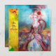 Diseño elegante, colorido, con clase y caprichoso en colores brillantes, fucsia, turquesa, azul turquesa, blanco. Hermosa y sofisticada mujer rubia blanquecina, telas azules y rosadas con brillo dorado de un traje barroco con plumas y una rosa roja. Pintura original en acuarela y acrílico con lámina dorada y colores iridiscentes en lienzo. Esta tarjeta genial y artística es perfecta para bodas, ceremonias nupciales, fiestas de soltera, dulces 16, fiestas de cumpleaños de quinceañera, bailes de disfraces, compromisos románticos, anuncios de "save the date", Navidad, oficina de vacaciones, reuniones familiares, cócteles, celebraciones de Nochevieja, aniversarios, reuniones, conciertos, recitales o casi cualquier evento que desees.