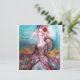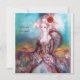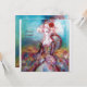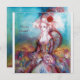 Diseño elegante, colorido, con clase y caprichoso en colores brillantes, fucsia, turquesa, blanco. Hermosa y sofisticada mujer rubia blanquecina, telas doradas brillantes azules y rosadas de un traje barroco con plumas y una rosa roja. Pintura original en acuarela y acrílico con lámina dorada y colores iridiscentes en lienzo. Esta tarjeta genial y artística es perfecta para bodas, ceremonias nupciales, fiestas de soltera, dulces 16, fiestas de cumpleaños de quinceañera, bailes de disfraces, compromisos románticos, anuncios de "save the date", oficina de Navidad, reuniones familiares, cócteles, celebraciones de Nochevieja, aniversarios, reuniones, conciertos, recitales o casi cualquier evento que desees.