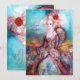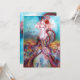 Diseño elegante, colorido, con clase y caprichoso en colores brillantes, fucsia, azul turquesa, turquesa, blanco. Hermosa y sofisticada mujer rubia blanquecina, telas azules y rosadas con destellos dorados de un traje barroco con plumas y una rosa roja. Pintura original en acuarela y acrílico con lámina dorada y colores iridiscentes sobre lienzo. Esta tarjeta genial y artística es perfecta para bodas, ceremonias nupciales, fiestas de soltera, dulces 16, fiestas de cumpleaños de quinceañera, bailes de disfraces, compromisos románticos, anuncios de "save the date", Navidad, oficina de vacaciones, reuniones familiares, cócteles, celebraciones de Nochevieja, aniversarios, reuniones, conciertos, recitales o casi cualquier evento que desees.