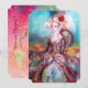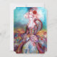 Diseño elegante, colorido, con clase y caprichoso en colores brillantes, fucsia, turquesa, blanco. Hermosa y sofisticada mujer rubia blanquecina, telas doradas brillantes azules y rosadas de un traje barroco con plumas y una rosa roja. Pintura original en acuarela y acrílico con lámina dorada y colores iridiscentes en lienzo. Esta tarjeta genial y artística es perfecta para bodas, ceremonias nupciales, fiestas de soltera, dulces 16, fiestas de cumpleaños de quinceañera, bailes de disfraces, compromisos románticos, anuncios de "save the date", oficina de Navidad, reuniones familiares, cócteles, celebraciones de Nochevieja, aniversarios, reuniones, conciertos, recitales o casi cualquier evento que desees.