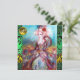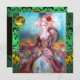 Diseño elegante, colorido, con clase y caprichoso en colores brillantes, fucsia, turquesa, blanco, flores damasco con una piedra preciosa de topacio amarillo brillante 3D. Hermosa mujer sofisticada de cabello rubio blanquecino, telas de oro azul, rosa brillante de un traje barroco con plumas y una rosa roja. Pintura original en acuarela y acrílico con lámina dorada y colores iridiscentes en lienzo. Esta tarjeta genial y artística es perfecta para bodas, ceremonias nupciales, fiestas de soltera, dulces 16, fiestas de cumpleaños de quinceañera, bailes de disfraces, compromisos románticos, anuncios de "save the date", oficina de Navidad, reuniones familiares, cócteles, celebraciones de Nochevieja, aniversarios, reuniones, conciertos, recitales o casi cualquier evento que desees.